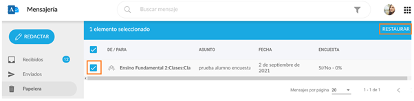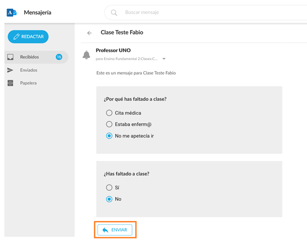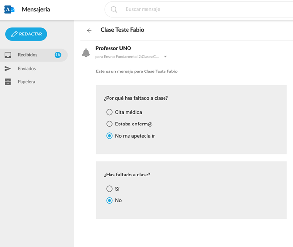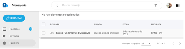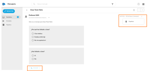 En este caso de mensaje con encuesta solo podremos responder a las encuestas o enviar el mensaje a la papelera: