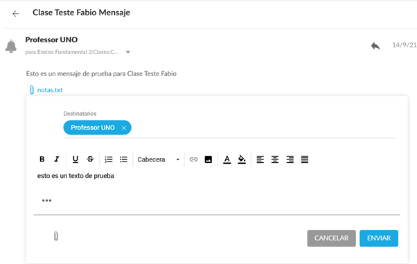 Escribimos el texto que queramos y realizamos el envío del mensaje