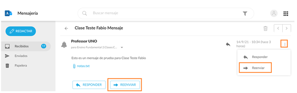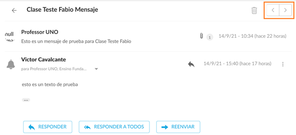Dentro del detalle del mensaje también podremos movernos por los mensajes de nuestra bandeja de recibidos pudiendo ver el anterior y el siguiente.