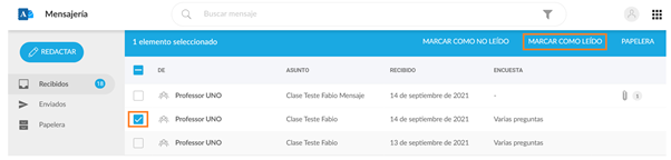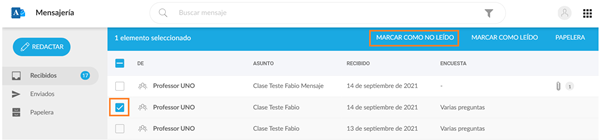 Seleccionamos el mensaje y podremos marcarlo como leído: