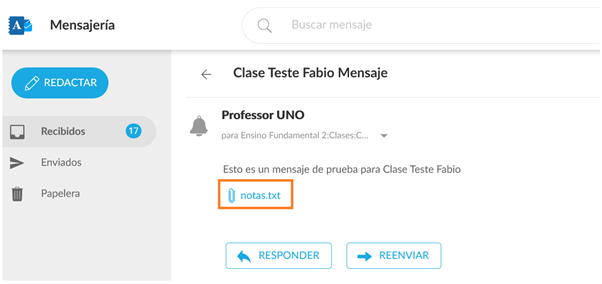 Cuando recibimos un mensaje con ficheros adjuntos para abrirlo solo tenemos que pulsar en el fichero recibido