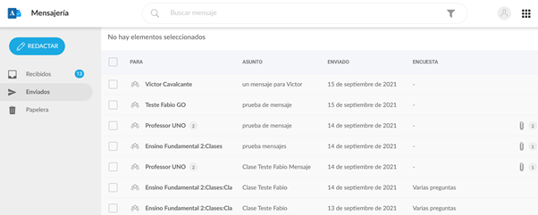 En la bandeja de enviados vemos los mensajes que hayamos enviado viendo primero los últimos que hemos enviado.