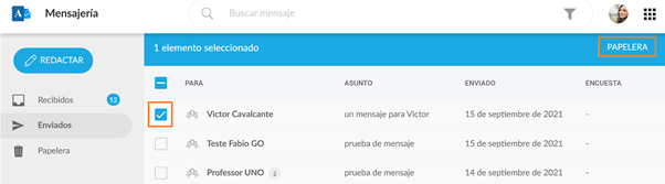 Si seleccionamos un mensaje podremos enviarlo a la papelera