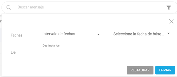 Los filtros disponibles son por texto, por fechas y por destinatarios