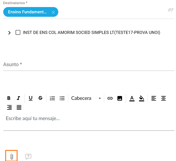 Aquí podremos introducir los destinatarios que queramos, el asunto, un mensaje, adjuntar uno o varios ficheros o realizar una encuesta.