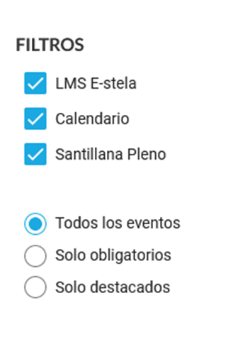 - Filtros dos calendários disponíveis