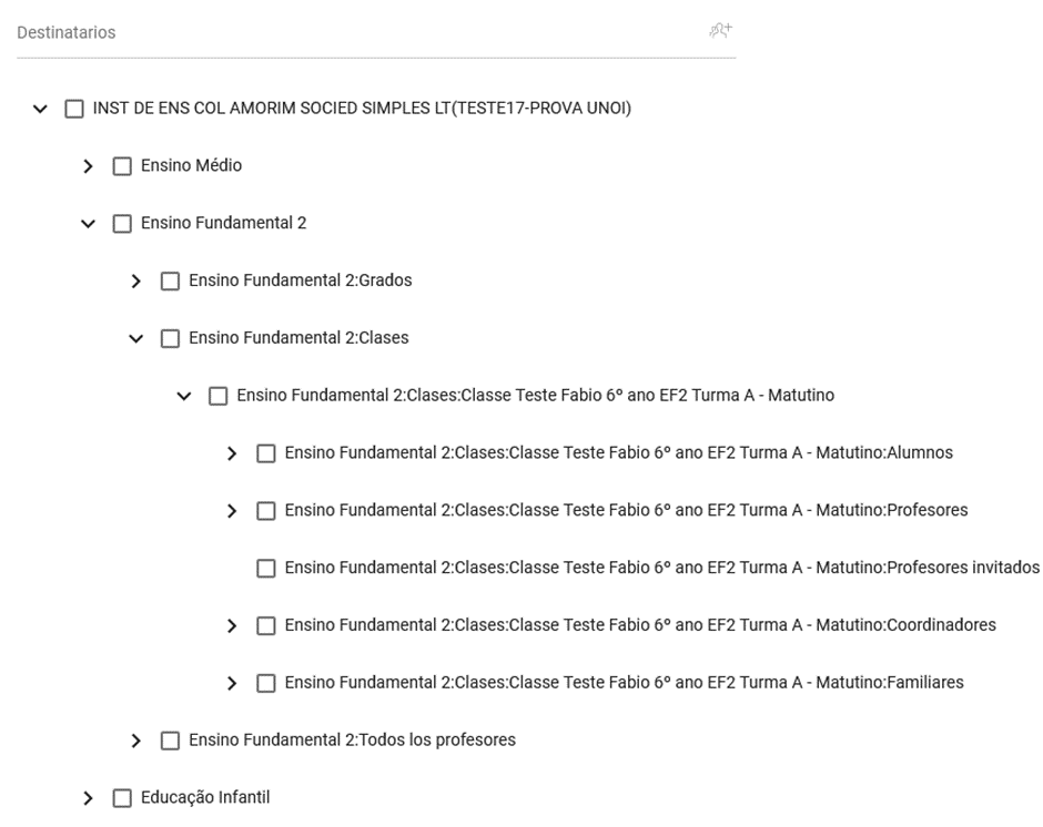 Uma vez selecionado o destinatário que você deseja da ramificação, ele aparecerá marcado e na lista de destinatários.