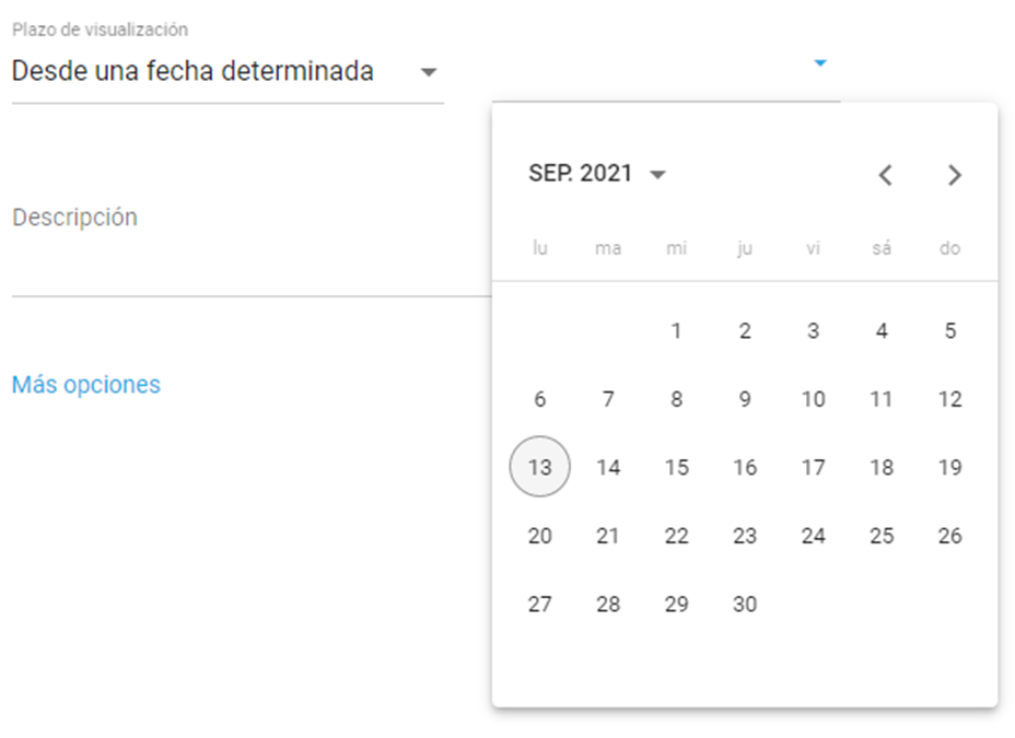- Período de visualização: Indica a partir de qual dia os usuários alvo poderão visualizar o evento. O criador sempre verá.