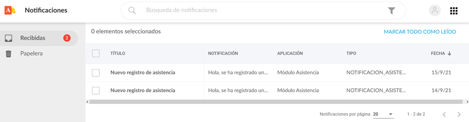 Qualquer usuário pode acessar o módulo de notificação. Como tela inicial você verá a caixa de notificações recebidas