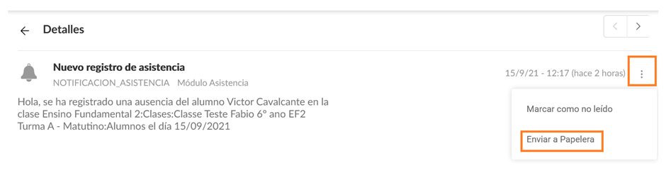 Quando temos uma notificação não lida na lixeira, podemos marcá-la como lida