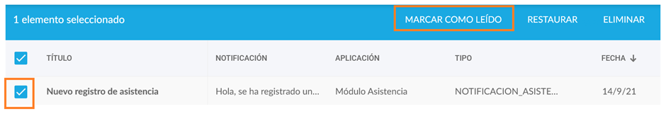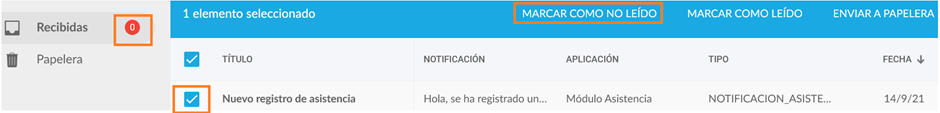 - Si la notificación restaurada está marcada como no leída entonces vuelve a recibidos y el contador incrementa